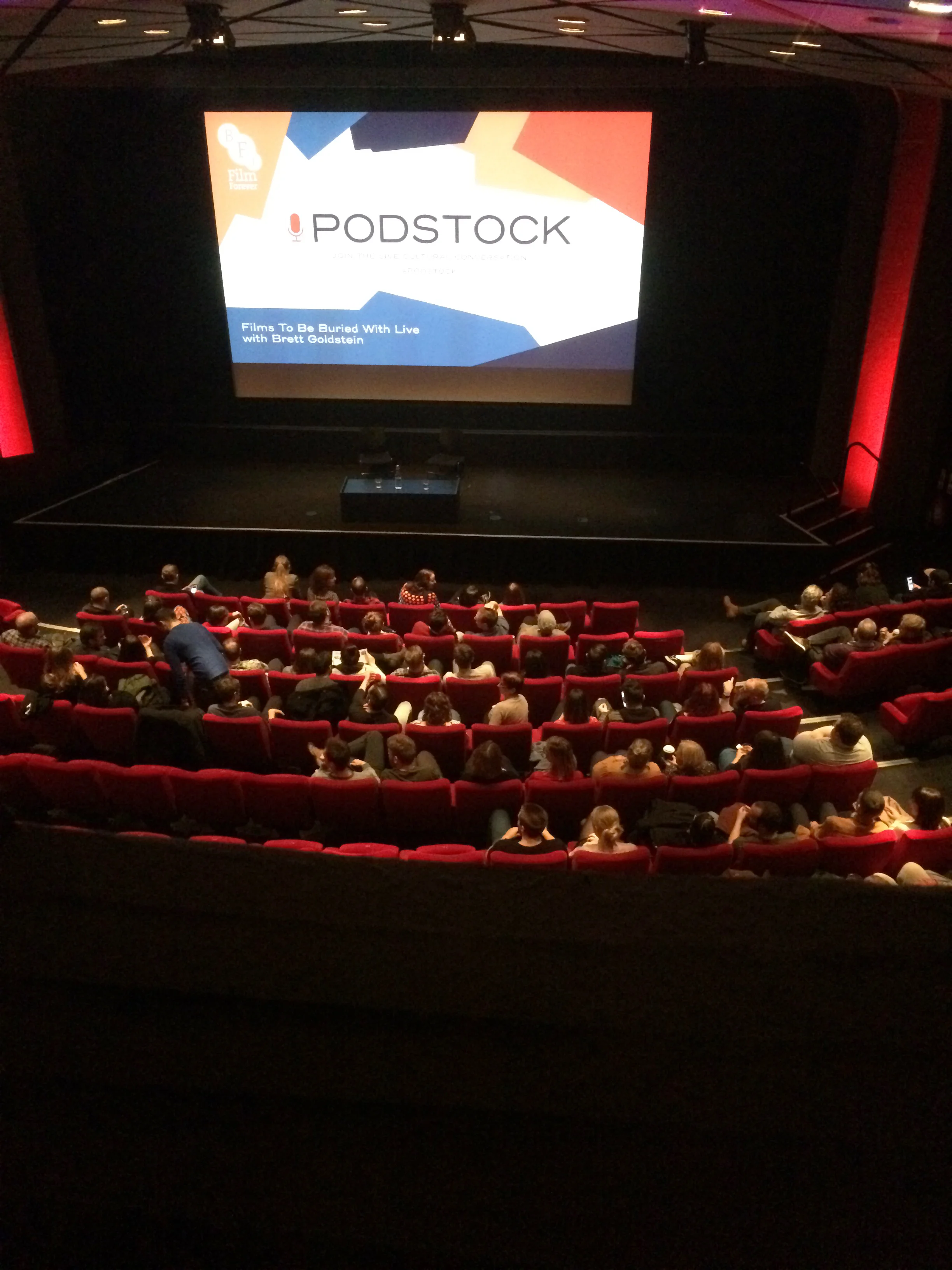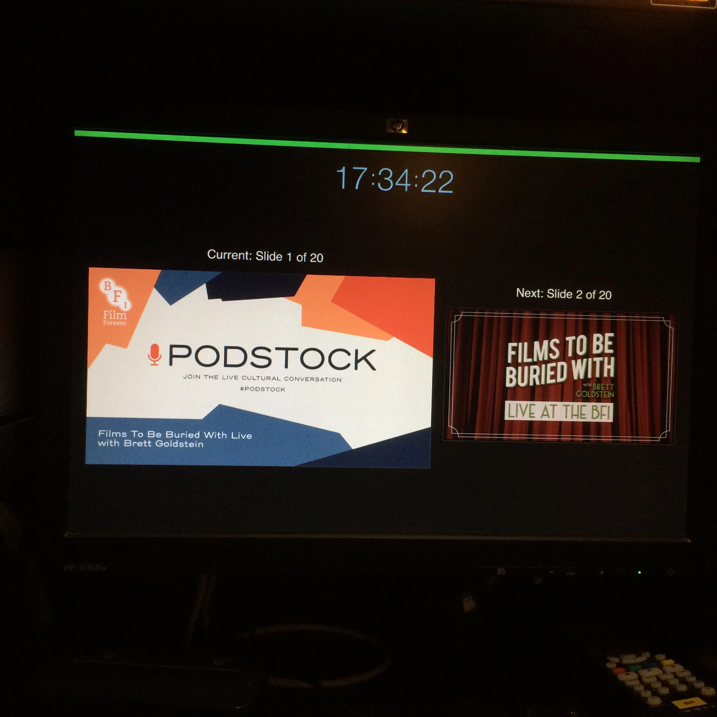 Podstock at The BFI was an absolute smash! What an awesome event to have at such a beautiful venue. The BFI often comes up on the Kermode & Mayo film podcast as Mark Kermode often does talks and shows from there, and it made total sense as it has a ton of screening rooms which are perfectly formed and ideal for projecting film or hosting talk-based events. I produce Scroobius Pip’s ‘Distraction Pieces Podcast’, which is on Pip’s own Distraction Pieces Network, which is home to - among a bunch of incredible shows - ‘Films To Be Buried With’, with Brett Goldstein (Superbob! Corner Boys! Doctor Who! More!). I produce this show, and Brett hosted a live version here at Podstock with extra special guest WILL POULTER (Maze Runner! Son Of Rambow! Detroit! Narnia! The Revenant!). It was a killer! One of the best. I was on visuals up in the projection booth (which was all maintained and handled immaculately by Alexa the projectionist), and will be producing the recording for a live episode down the line. Brett and Will did some awesome business up on the stage there, with some witty, fascinating, serious and super entertaining anecdotes and memories about set life, co-stars, and this whole acting and podcasting life… You’ll hear that on the podcast soon, and I’ll get to it here on Podd Deep soon enough, but I just wanted to give a shout to the event. It would be incredible for there to be more live celebrations of this kind of thing, and it gives such a great opportunity to people to meet and see the hosts of their favourite shows. Bigups to the BFI and to Brett and Will for a dope show. Loved it.